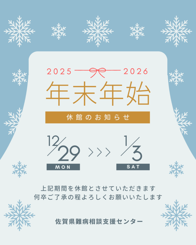 2025年12月29(月)~2026年1月3日(土)の期間、年末年始のため休館いたします